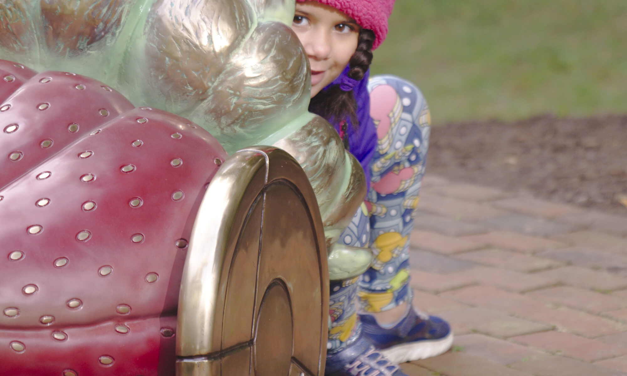 Those questions provided the inspiration for BerryHeart. Here we have a cast bronze, armored torso with a window in the area of the heart. Instead of a heart, there is a polychromed red and jewel like strawberry. The armored torse serves to protect this precious object, but it is still on display.